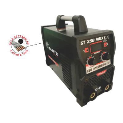 Ciclo de trabalho de 100% em eletrodo de 5mm.